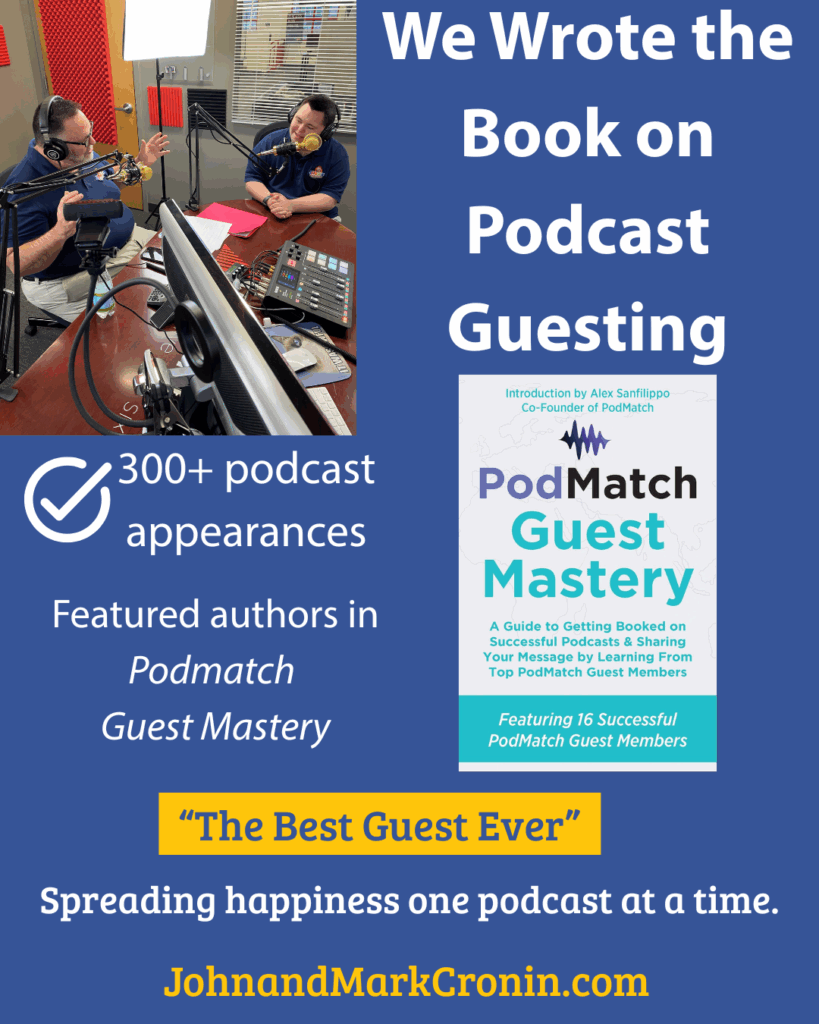 By Mark X. Cronin It started with a sock and a dream and grew into over 300 podcast appearances and now, a chapter in a book that teaches others how to do the same. John and I have always believed in the power of storytelling. It’s how we connect, how we inspire, and how we […]
